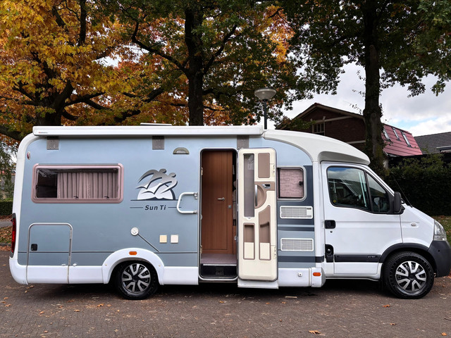 Een zeer mooie en luxe uitgevoerde KNAUS SUN TI 650 van het bouwjaar 2006. Het betreft hier een " MEG uitvoering " met vele opties en luxe van dien. Zo is hij voorzien van, airco, ENKELE BEDDEN, aur camera ( onlangs nieuw ingebouwd ), navigatie, 2x nieuwe accu, ZONNEPANELEN, garage met extra luik ( zowel de linkerzijde als de rechterzijde ), luifel van 3.5 m ( iets verhoogd om de deur los te kunnen laten bij het uit/indraaien ), INRUIL MOGELIJK, panoramadak in de cabine, draaibare voorstoelen, koelkast met diepvries, toilet, douche ( niet gebruikt door de laatste eigenaar ), extra deurslot, kabels etc aanwezig, 3/4 slaap plaatsen ( dinette om te bouwen tot slaaplek ), 6 versnellingen, goed onderhouden , mistlampen voor, lichtgewicht gasfles, elektrische ramen, etc...