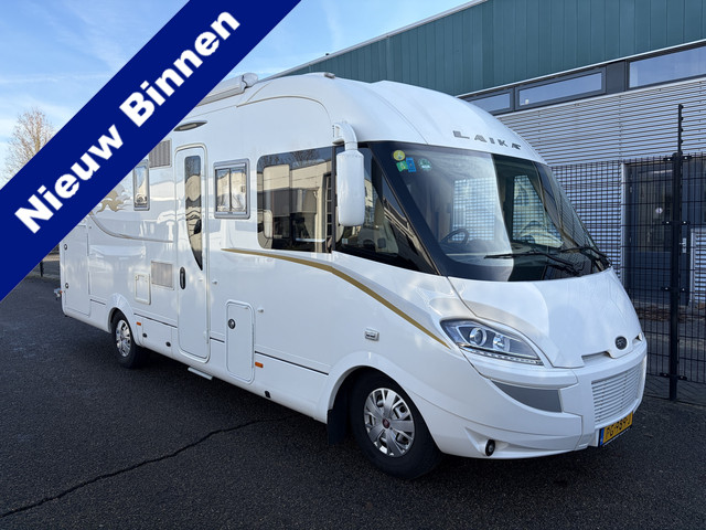 Zeer nette Laika KREOS 7009 3.0 Automaat voorzien van Levelsysteem, beige leder, lengtebedden en een hefbed, zonder fietsenrek.