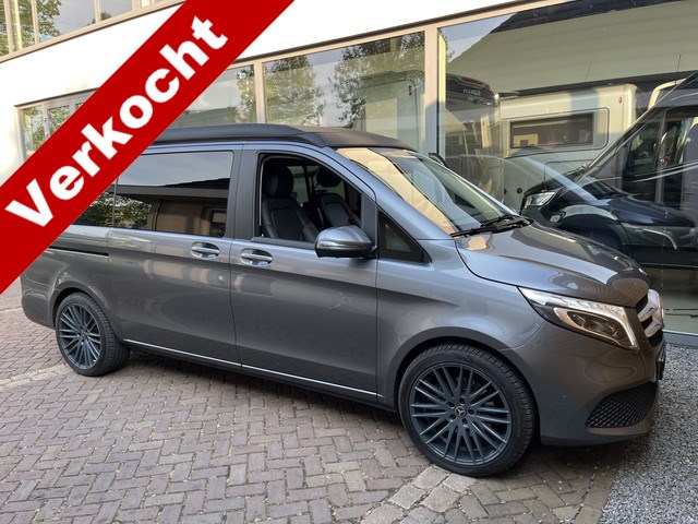 Keurige Mercedes-Benz MARCO POLO V300 AUT 4-MATIC, voorzien van vele opties zoals el. Schuifdak in het hefdak, Leder, stoelverwarming, LED koplampen, el. schuifdeur, trekhaak, 20inch velgen enz.