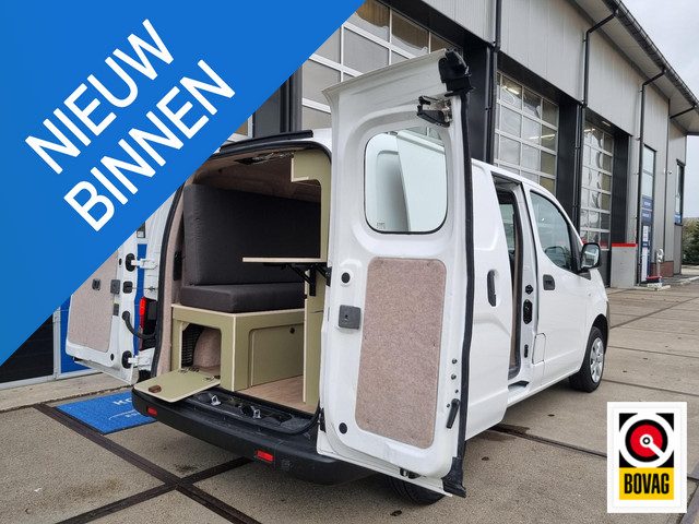 Fraaie Nissan NV200 1.6 St. Maxime MINICAMPER welke voorzien is van een riant bed, ruime zitbank, wandkast met diverse opbergmogelijkheden, walstroomaansluiting met 220V wandcontactdoos + aardlekschakelaar, ingebouwde plafondspotjes, USB...