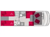 Deze mooie Pilote camper heeft voorin een ruime zitgroep bestaande uit een L-bank met twee draaibare cabinestoelen en een apart bankje, achterin zijn twee aparte bedden die om te bouwen zijn tot één groot bed. Boven de zitgroep is een tweepersoons hefbed.