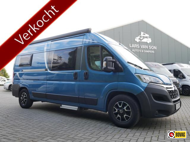De camper heeft een stahoogte van 191 cm en een dwarsbed 155 / 140 X 195 cm.