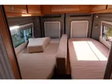 Betreft een originele Possl buscamper uit 2011, een lange variant met vaste bedden in de lengte en een trekhaak.