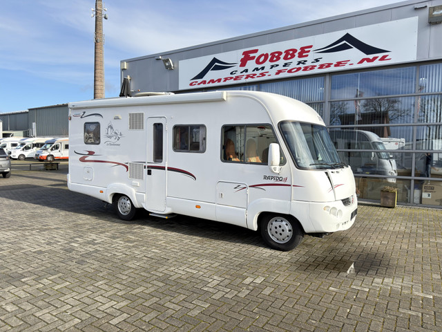 !! nu van €32950,- voor €29950,- !! In Superstaat verkerend en bomvol mooie opties met slechts 84dkm! De Rapdio LeRandoneur 986F uitvoering uit 2006! uitgerust met airco, multimedia systeem met groot beeldscherm en een fijne 145PK sterke Fiat 2.8Jtd motor met net 84795km op de teller. Voorzien van 2 luxe ISRI pilootstoelen, facetoface zit wat enorm veel leefruimte creëert, ruim hefbed, ruim fransbed, ruime hoekkeuken met XXL koelkast en hangkast, zonnepaneel, dakventilator, multiheat, verduistering cabine, trekhaak, water buitenaansluiting, WC met wasgelegenheid en aparte douchecel!