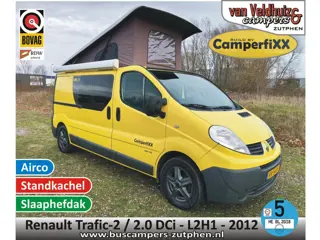 Werkelijk keurig nette Renault Trafic L2H1 "VanLife" in een frisse gele kleur, fijne optie's zoals 5 zitplaatsen én slaaphefdak. De ideale combi auto/camper voor woon/werkverkeer én er in de weekenden/feestdagen/vakantie's er op uit. Door de "lengte 2" uitvoering net dat beetje meer ruimte wat toch zeer welkom is!
