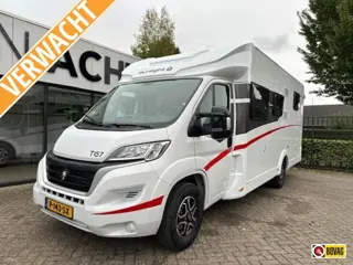 De Sunlight T67: royaal uitgerust, praktisch ingedeeld automatische transmissie en geschikt voor 5 personen. De camper is uitgerust met een radio/navigatiesysteem en een achteruitrijcamera. Daarnaast beschikt hij over een fietsenrek, luifel.