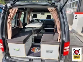 Om te verduisteren en voor de knusheid is deze Caddy voorzien van op maat gemaakte gordijnen.