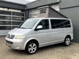 Een zeer nette Volkswagen T5 2.5 TDI 130pk L1H1 Camper met Hefdak Airco Cruise controle Trekhaak 2500kg trekgewicht 2-persoonsbed Euro 4 Voortent Keukenblok Parrot