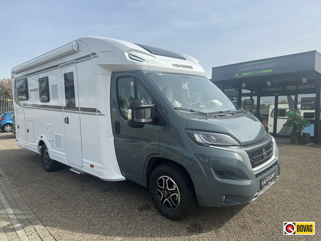 Deze camper wordt 14 november bij ons verwacht en had een nieuwprijs van 114.000 euro. Unieke ensuite badkamer, extra hoog plafond met een stahoogte van 215cm en een speciale uitvoering zonder hefbed! PREMIUM opbouwdeur, Mistlampen voor met bochtverlichting, Toegestane maximum massa van 3.500 naar 3.650 kg, Chassis lak: Lanzarote Grey, Extra voertuigsleutel met afstandbediening, Brandstoftank 90 liter, Schroefveerset achteras (optimalisering chassis), Dashboard met techno design (alu), Media pakket, Fiat Pakket Weinsberg, Styling pakket, Weinsberg SMART pakket 1, Opbergkasten in plaats van hefbed, bekleding DUSK. E1128.