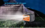Press the LED button twice to turn on the SOS light. You can easily check the remaining energies, discharge, output status, etc through the display. You can use the buttons to select charging input, AC output, or DC output