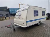 Caravan wordt geleverd incl. Fietsendrager voorop, vouwwand bij vast bed, kattenstaarten en universele dakluifel