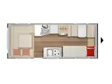 Middenin de caravan vindt u de keuken en de toiletruimte.