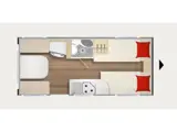 De Premio 460 TL heeft achterin de caravan een gezellige standaard zit, een middenkeuken, middentoilet en voorin de caravan de 2 enkele bedden.
