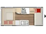 • Slimme en Ruime Indeling: Ondanks zijn compacte formaat biedt de caravan een ruime indeling met een royale zithoek, praktische keuken en voldoende opbergruimte voor al uw spullen.