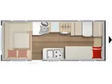 • complete keuken met hoge koelkast, een toiletruimte en voldoende opbergruimte voor al uw kampeerspullen. Zo heeft u alles binnen handbereik voor een ontspannen vakantie.