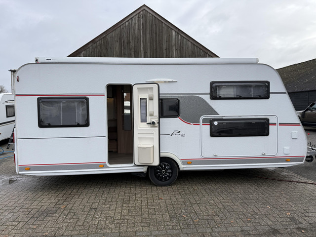 NETTE BURSTNER 510 TK 7 PERSOONS VOORZIEN VAN EEN HEFBED RONDZIT TREINZIT EN EEN STAPELBED VOORZIEN VAN EEN THULE 6300 CASSETTTE LUIFEL OVER DE VOLLE LENGTE TRUMA VOLAUTOMATISCHE MOVER KANTELBARE THULE FIETSENDRAGER