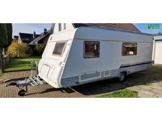 Ruime 6persoons gezinscaravan met stapelbed, fransbed (maar liefst 1,50m breed) en een grote rondzit (om te bouwen tot 2persoons slaapplek). De caravan is in nette staat, maar bevat, gezien zijn leeftijd, lichte gebruikssporen. Hij komt alleen uit de stalling voor vakanties. De voornaamste pluspunten zijn: een volautomatische mover, een elektrische bijverwarmer in de Truma kachel, zodat het ook zonder gasverbruik aangenaam blijft en een riante voortent met luifel voor extra leef comfort tijdens de vakanties.