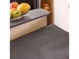 In het midden van de caravan is de toiletruimte met draaibaar cassette toilet en een douchebak geplaatst. In de keuken tegenover de toiletruimte vindt u o.a. een Compressor koelkast XL Freeze van 150 liter en een 3-pits kooktoestel en spoelbak uit RVS met een glazen afdek voor meer werkruimte.