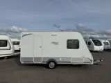 Caravalair Antares 400 Luxe ! Ideale indeling ! Licht Gewicht Caravan ! Dwarsbed, Treinzit (deze zit kunt u tevens gebruiken als een Tweepersoonsdwarsbed). Toiletruimte met Toilet, Koelkast, Kachel, Luifel, Fietsendrager achter ! Lichtgewicht caravan !