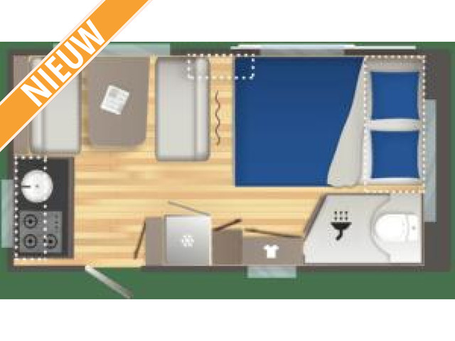 De Sport Line 410 heeft slaapplaatsen voor 3 personen. Het frans bed voorin de caravan heeft een afmeting van 138 x 198 cm. Achterin de caravan vindt u een comfortabele treinzit. Deze treinzit kan in een handomdraai worden omgebouwd tot een ruim bed van 108/103 x 185 cm.