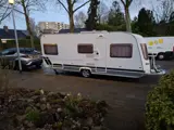 Caravan met voortent en zakluifel en mover .nieuw dakluik, elektrische kachel met ringverwarming, cassette toilet, fietsen drager voor 2 fietsen