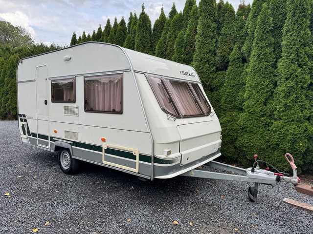 Chateau 390D Calista Vastbed Treinzit LICHTGEWICHT Walker voortent fietsendrager, caravan verkeert van binnen erbuiten in zeer nette staat.