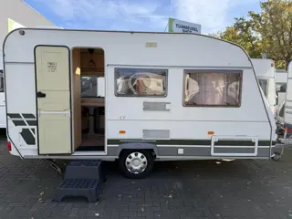 NETTE CHATEAU 390 TTZ MET TREINZIT EN EEN VASTBED (EVENTUEEL OM TE BOUWEN NAAR EEN ZITGROEP)MET MOOIE VOORTENT EN EEN FIETSENDRAGER