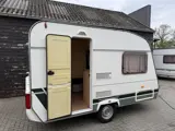 SUPER NETTE 2 PERSOONS CARAVAN MET VOORTENT TOILET FIETSENDRAGER KLEINE CARAVAN LICHT GEWICHT 715KG WEL EEN PAAR HAGELPUKKELS MAAR WEL ERG NETJES