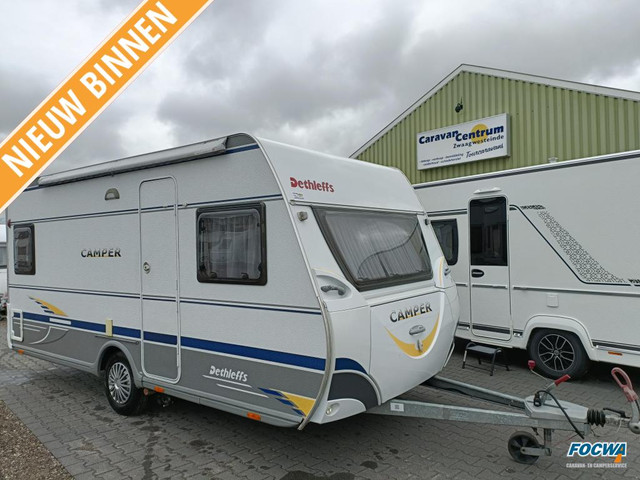 Met Mover ! Dethleffs Camper 450 DB, Met Fransbed ! Lengtebed en Rondzit (waar u tevens ook een Tweepersoonsbed van kunt maken). Wasruimte met Douche en Toilet ! Koelkast, Kachel, Zakluifel met Zijwanden en Voorwand ( Safariroom). Mooie Ruime Caravan, met veel Kastruimte !