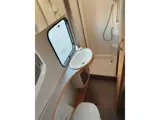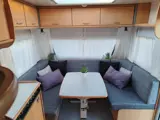 Dethleffs New Line 450 DB, Ruime Caravan met: Fransbed / Lengtebed, Ruime Rondzit (deze zit kunt u tevens gebruiken als een Tweepersoonsdwarsbed). Met Ruime Badkamer, waarin een Douchecabine met Douche aanwezig is en een Toilet, Koelkast, Kachel en Ruim Aanrecht, CassetteLuifel !