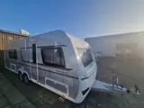 De caravan beschikt over een slimme indeling en een compleet uitgeruste keuken met verlengt aanrechtblad die webklapbaar is.