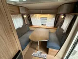 De Feeling 425 heeft voorin een gezellige standaard zit, een middenkeuken, middentoilet en achterin de caravan bevindt zich het dwars geplaatste 2 persoons bed.