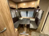 De Nova Light 442 heeft een standaard zit voorin de caravan, een middenkeuken, midden toilet en achterin de caravan het "V" bed / 2 enkele bedden.