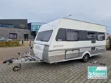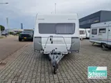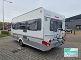 Caravan wordt geleverd incl. Halfautomatische mover, zakluifel, fietsendrager voorop en achterop, reservewiel, aluminium velgen, groot serviceluik, hordeur, radio incl. Boxen, vouwwand bij vast bed, TV en tv beugel