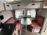 De Touring 310 heeft standaard voorin de caravan een kleine zit, een middenkeuken en achterin de caravan een dwars vast bed.