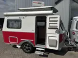 Eriba Touring 310 Tango Red Editie bouwjaar 2024 voorzien van comfort pakket, 1050 kg chassis, reservewiel met houder, binnenveringsmatrassen, fietsendrager voor en achter, comfortkussens, vaste watertank, boiler, serviceluik rechts achter en achter, hefdak isolatieset, porta potti toilet inclusief inbouw, Volautomatische Easydriver mover inclusief lithium batterij en Thule cassette luifel