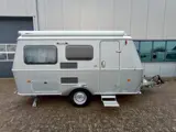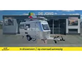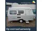 Verder beschikt deze caravan over een practische keuken met tweepits-kookplaat, lage koelkast, spoelbak en aanrechtverbreder. Er is toiletruimte met wastafel en diverse ruimte opbergemogelijkhede voor de bagage.