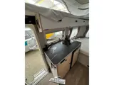 De Eriba Touring 430 heeft standaard voorin de caravan een kleine zit, een middenkeuken, een middentoilet en achterin de caravan dwars 2 persoonsbed.