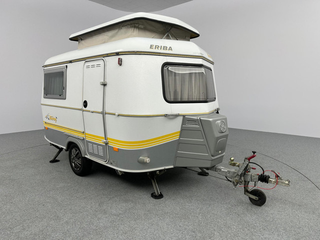 Deze prachtige en zeer goed onderhouden Eriba Touring Pan Familia 310 is klaar voor nieuwe avonturen. Met een bijna gloednieuwe Walker voortent t.w.v. €1.700,- creëert u eenvoudig extra leefruimte. Deze compacte Eriba caravan biedt slaapplaatsen voor 3 personen, wat uniek is voor dit model. In het midden bevindt zich de keuken en een hangkast. De caravan beschikt over een dubbele dinette, die u eenvoudig kunt ombouwen tot comfortabele bedden. De Eriba Touring Pan Familia 310 heeft een maximaal gewicht van 750 kg, waardoor hij achter vrijwel elke auto kan worden meegenomen.