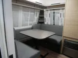 De treinzit vormt niet alleen een gezellige plek om te zitten, maar is ook een extra slaapgelegenheid. Het keukenblok is centraal in de caravan gemonteerd en is onder anderen uitgerust met een 3-pits gascomfoor, spoelbak en kraan. Er is een warmwatervoorziening in de vorm van een boiler aanwezig. De ingebouwde koelkast met vriesvak is uitgevoerd in een ruime uitvoering. Al uw keukenspullen passen in de handige ladekast.