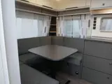 De ruime rondzit, waar deze caravan over beschikt, kan ook als slaapgelegenheid worden gebruikt. Het keukenblok is centraal in de caravan gemonteerd en is onder anderen uitgerust met een 3-pits gascomfoor, spoelbak en kraan. Een ingebouwde boiler voorziet u van warm water. Om uw etenswaren op te bergen is er een koelkast met vriescompartiment ingebouwd. De keukenbenodigdheden vinden een plekje in de ladekast.