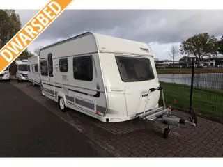 Nette Fendt 445 TF Bianco uit bouwjaar 2014. Caravan is voorzien van dwarsbed, Voortent (ventura incl. glasfiber frame), Truma automatische mover.