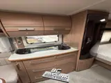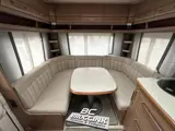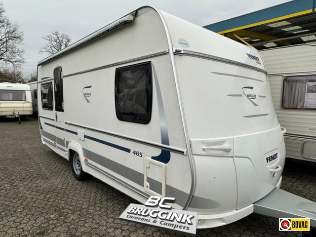 De Fendt Bianco 465 SFB met achterin een gezellige rondzit, een middenkeuken (niet tentkant) en voorin de caravan het franse bed met daarnaast het cassettetoilet.
