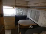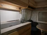 De treinzit vormt niet alleen een gezellige plek om te zitten, maar is ook een extra slaapgelegenheid. Achterin de caravan bevindt zich de keuken, die uiteraard is voorzien van een kraan, gootsteen en een 3-pits kooktoestel. Voor een snelle toevoer van warm water is er een 10 liter boiler aanwezig. De inbouwkoelkast (133 liter) met vriescompartiment heeft een grote inhoud.