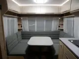 De caravan heeft een gezellige rondzit die u eenvoudig kunt ombouwen tot comfortabele slaapplaats. Centraal in de caravan bevindt zich de middenkeuken, uitgerust met een spoelbak, kraan en 3-pits kooktoestel. De boiler, die in de caravan is ingebouwd, voorziet u snel van warm water. De inbouwkoelkast met vriescompartiment heeft een grote inhoud. De praktische ladekast is een handige plek voor de keukenbenodigdheden.