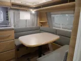 U kunt gezellig plaatsnemen in de praktische standaardzit, die ook kan worden omgebouwd tot slaapplaats. De middenkeuken is zeer compleet uitgevoerd. De apothekerskast is perfect om al uw etenswaren overzichtelijk in op te bergen. De boiler, die in de caravan is ingebouwd, voorziet u snel van warm water. De koelkast met vriescompartiment is ruim genoeg voor al uw etenswaren.