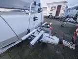 Altijd handig om een reservewiel aan boord te hebben mocht het op vakantie toch eventjes tegen zitten allemaal. Deze hangt aan de achterkant onder de caravan in een rek.