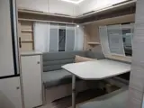 De treinzit vormt niet alleen een gezellige plek om te zitten, maar is ook een extra slaapgelegenheid. Het keukenblok, dat centraal in de caravan is gemonteerd, heeft voldoende bergruimte en is uitgerust met een 3-pits gascomfoor, spoelbak en kraan. De apothekerskast in de keuken is handig om de kleine spullen in op te bergen. Een ingebouwde boiler voorziet u van warm water. De ingebouwde koelkast met vriesvak is uitgevoerd in een ruime uitvoering. De praktische ladekast is een handige plek voor de keukenbenodigdheden.