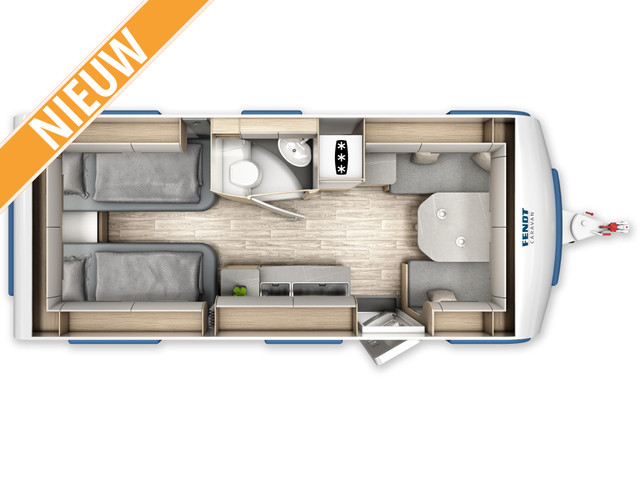 Slapen doet u op de 2 aparte bedden, die borg staan voor extra ruimte en een makkelijke instap. De badkamer biedt gelegenheid om u aan de wastafel op te frissen en er is tevens een cassettetoilet.