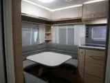 De caravan heeft een gezellige rondzit die u eenvoudig kunt ombouwen tot comfortabele slaapplaats. De keuken is in het midden van de caravan geplaatst. Er is voldoende bergruimte, uiteraard zijn er ook een 3-pits kooktoestel en gootsteen met kraan aanwezig. Er is een warmwatervoorziening in de vorm van een boiler aanwezig. De koelkast met vriesvak biedt voldoende ruimte voor heel uw voorraad. Al uw keukenspullen passen in de handige ladekast.